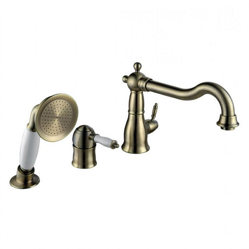 Смеситель для ванны встр. в борт, (толщ. борт. max. 8мм) на 3 отв. (шланг, лейка в компл), (цв.бронза) Arcana Royal ZZ