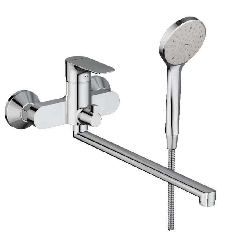Смеситель для ванны/душа, лейка и шланг в комплекте, цв.хром