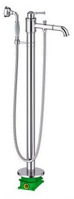 Смеситель напольный для ванны, с ручным душем и изливом, цв. хром