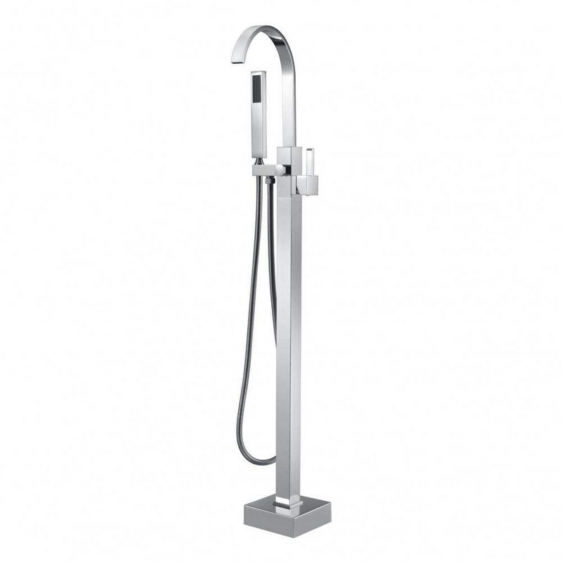 Смеситель напольный для ванны, с ручным душем и изливом, цв. хром