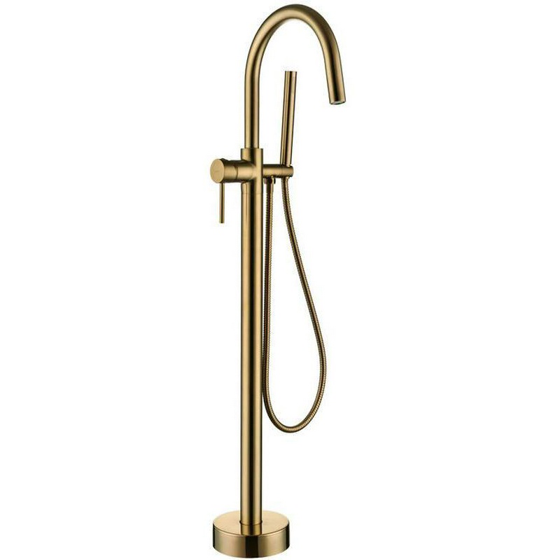 Смеситель для ванны, напольный, душевая лейка, шланг в компл., (цв.брашированное золото), Eco ZZ