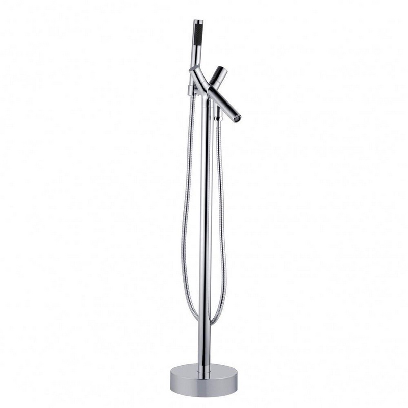 Смеситель напольный для ванны, с ручным душем и изливом, цв. хром