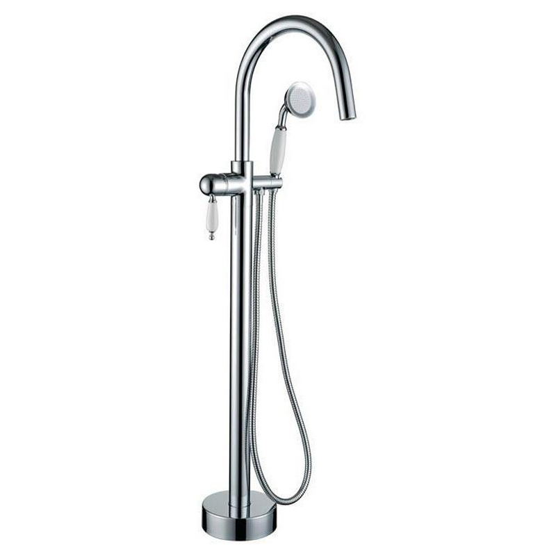Смеситель напольный для ванны, с ручным душем и изливом, цв. хром