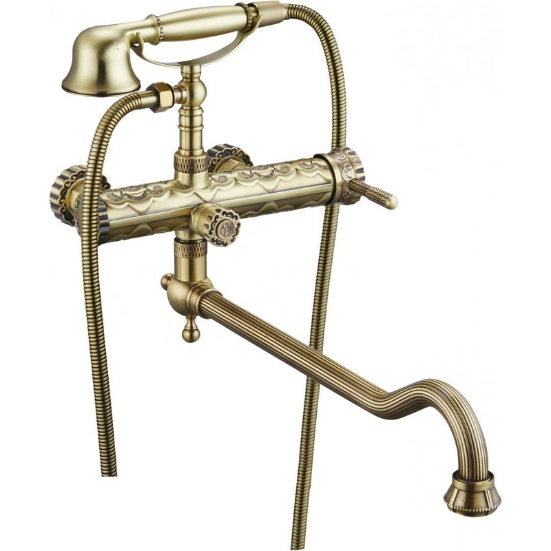 Смеситель для ванны/душа, длинный излив 350 мм, с установочным комплектом, аксессуарами, бронза XX