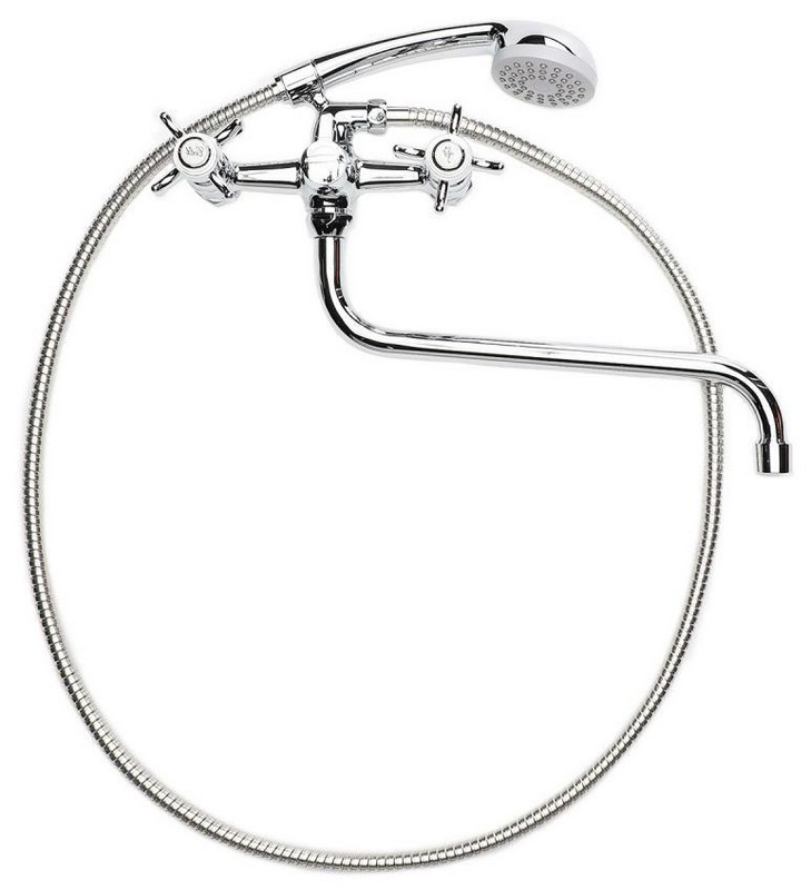 Смеситель для ванны/душа, лейка и шланг в комплекте, цв.хром