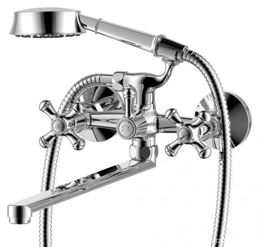 Смеситель для ванны/душа, лейка и шланг в комплекте, цв.хром