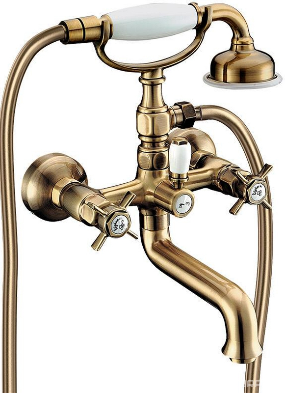Смеситель для ванны/душа, короткий излив, с установочным комплектом, аксессуарами, бронза XX
