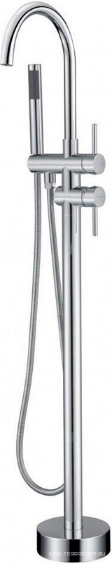 Смеситель напольный для ванны, с ручным душем и изливом, цв. хром