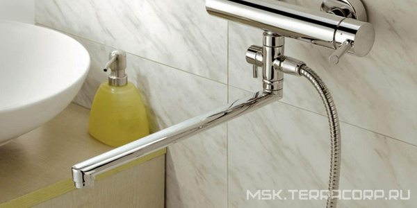 Смеситель для ванны, с поворотным изливом 30см, лейка, шланг, кронштейн в компл., (цв.хром), Angel