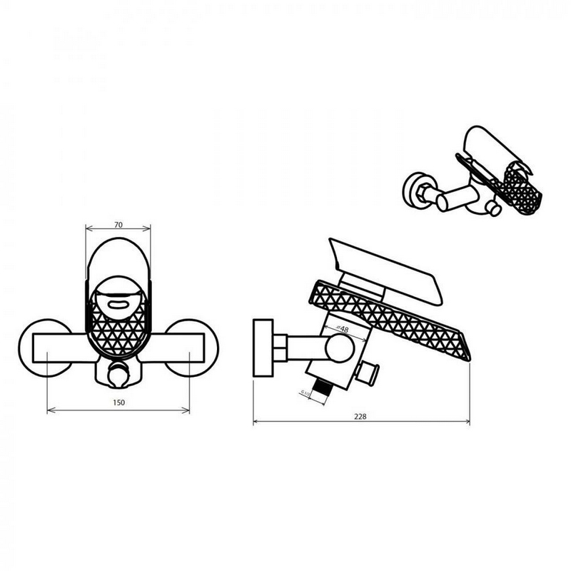 Смеситель для ванный Boheme hypnose Смеситель Boheme Hypnose 233-G для ванны с душем| 21x16x22