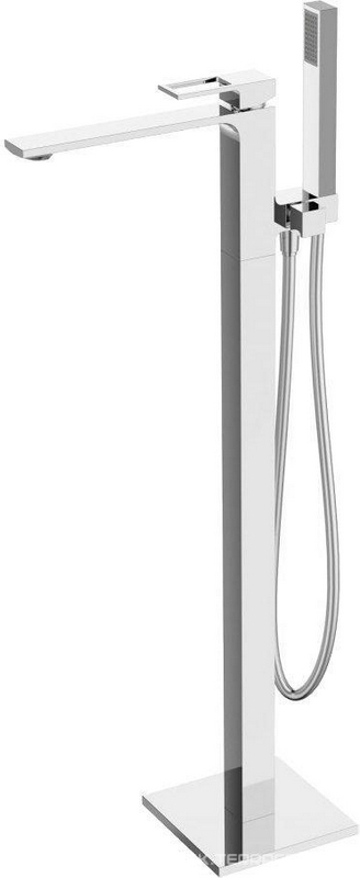 Смеситель напольный для ванны, с ручным душем и изливом, цв. хром