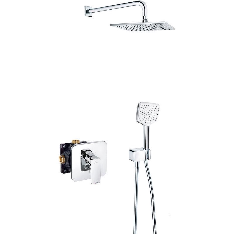 Комплект встраиваемого смесителя для ванны/душа (смеситель с внешней и встраив.частью, лейка, шланг, верхний душ с кронштейном, излив), цв.хром