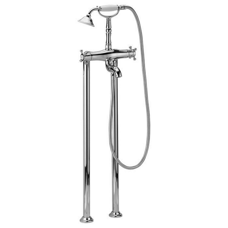 Смеситель для ванны, напольный, трубы 2шт., с кронштейном д/слива-перелива, шланг, лейка в компл., (цв. бронза ), Golf ZZ