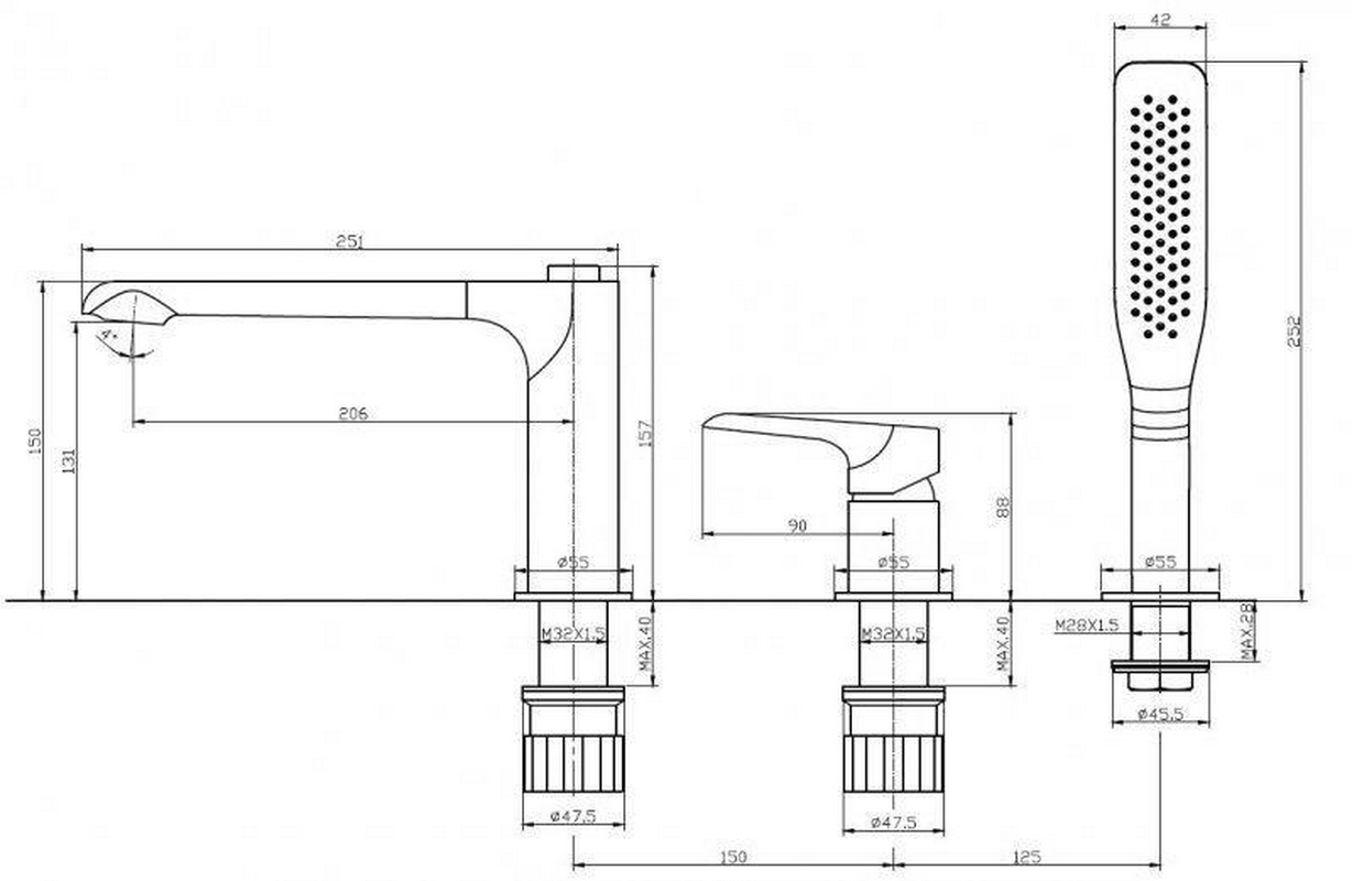 Смеситель для ванный BelBagno Ancona Смеситель для ванны, встраиваемый в борт на 3 отв., лейка, шланг в компл., (цв.хром), Ancona ZZ