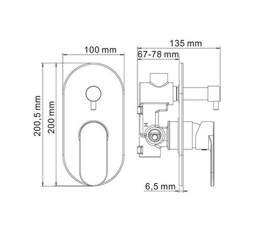 Встраиваемый смесител ь для душа с гигиенической лейкой, чёрный ZZ