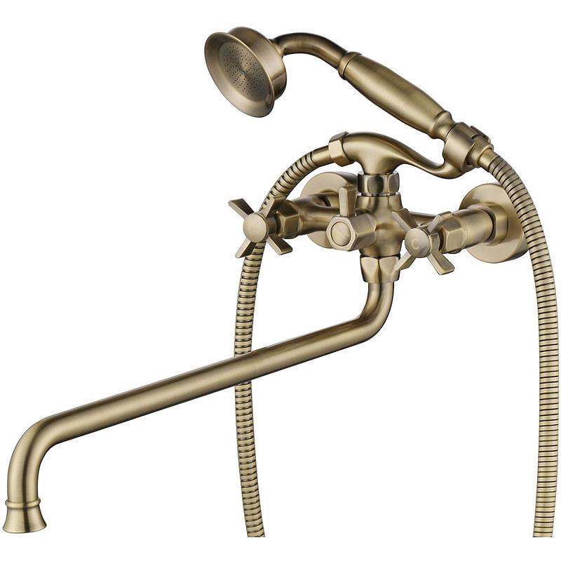 Смеситель для ванны/душа, длинный излив 350 мм, с установочным комплектом, аксессуарами, бронза XX