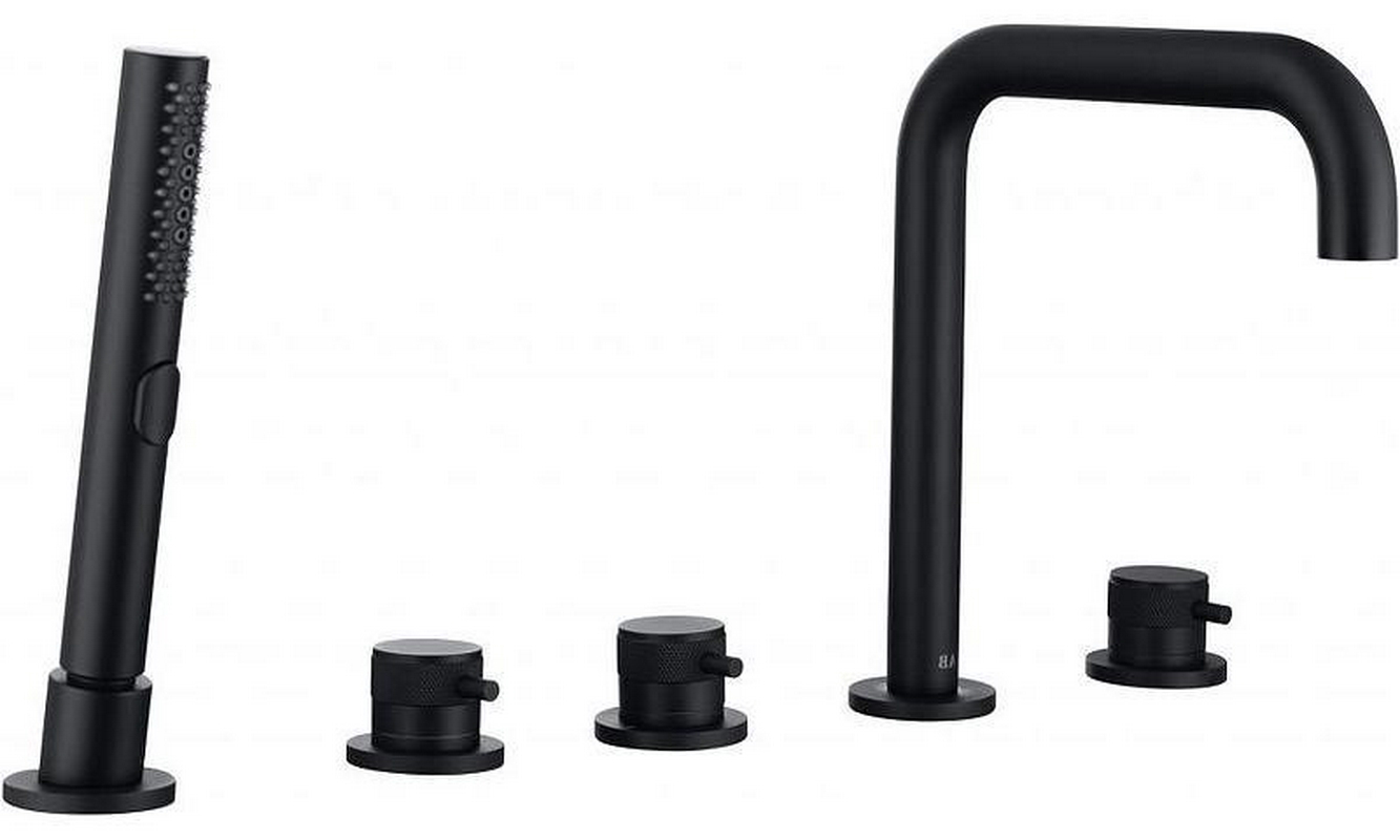 Смеситель для ванный Allen Brau Priority Смеситель для ванны, встраиваемый в борт, на 4 отверстия, с душ.гарнитуром, (цв.черный матовый), Priority ZZ