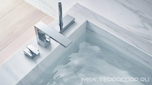 Смеситель для ванный Hansgrohe Axor Edge Смеситель для ванны напольный (без скрытой части арт.10452180) в комплекте шланг 1,25м и ручной душ, (цв.полированное золото), Axor Edge ZZ