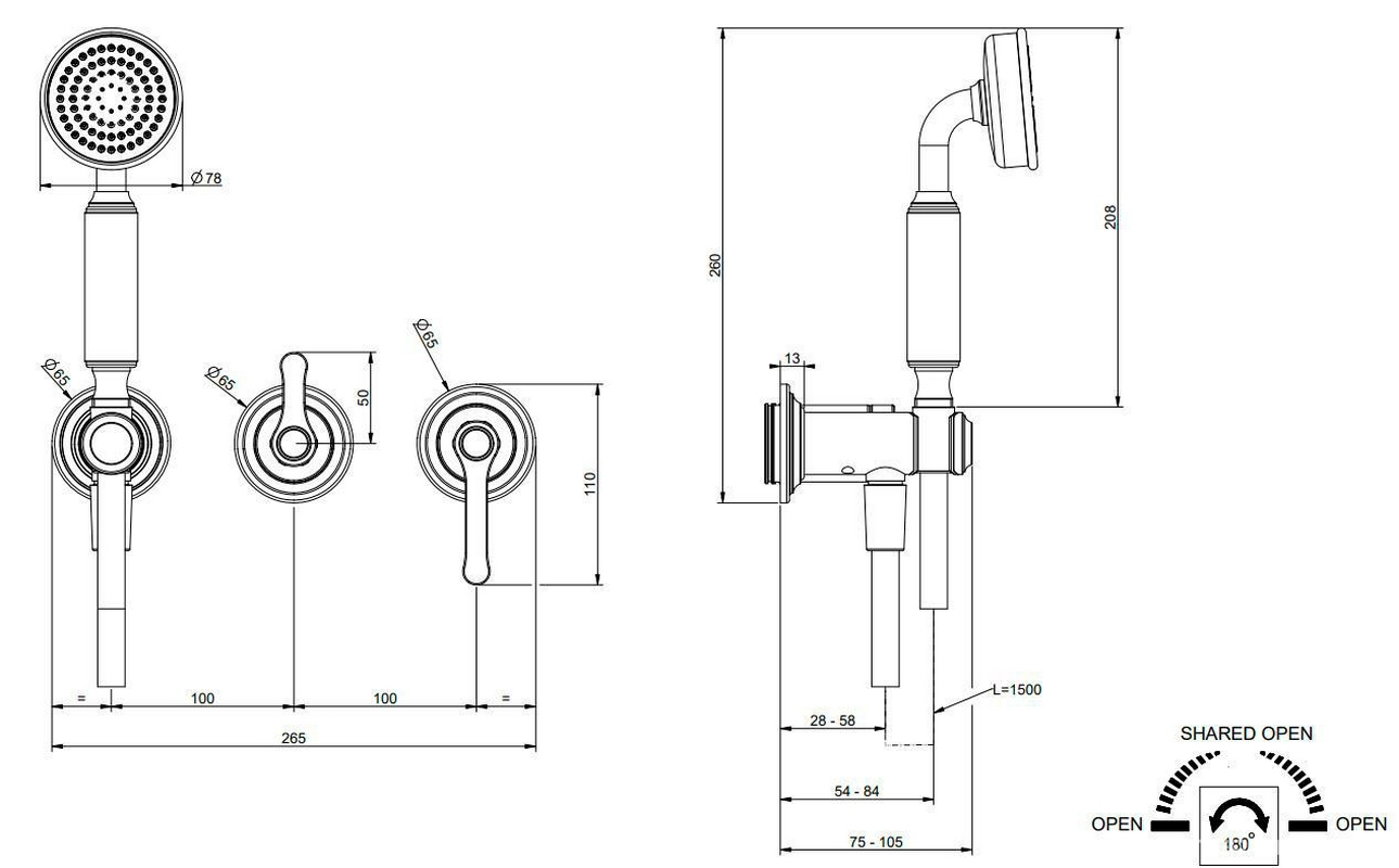 Смеситель для ванный Gessi Venti20 Смеситель для ванны/душа, встраив. в стену, на 2 потребит, лейка, шланг, кронштейн в компл., БЕЗ встр.части арт.54139 031, (цв.Copper PVD), Venti20 ZZ