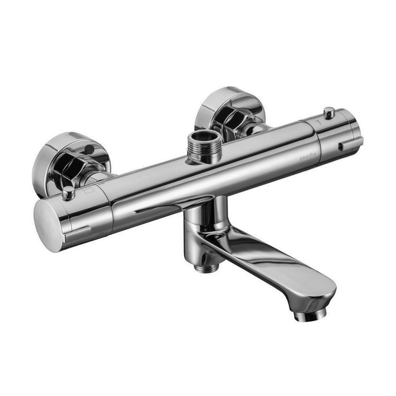 Смеситель для ванны, термостатический с поворотным изливом/дивертором и верхним подкл-ем, (цв.хром), ZZ Swedbe Mercury 9042