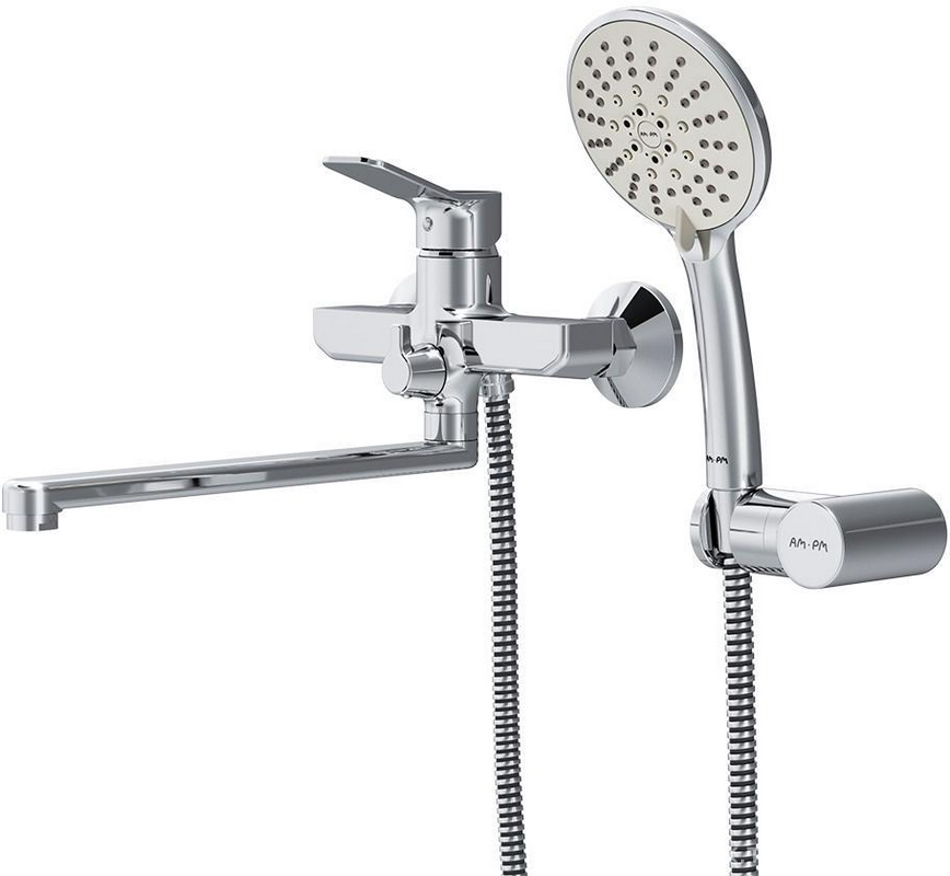 Смеситель для ванный AMPM X-Joy Смеситель для ванны и душа AM.PM X-Joy F85A95000 с длинным изливом и душевой лейкой, цвет хром ZZ