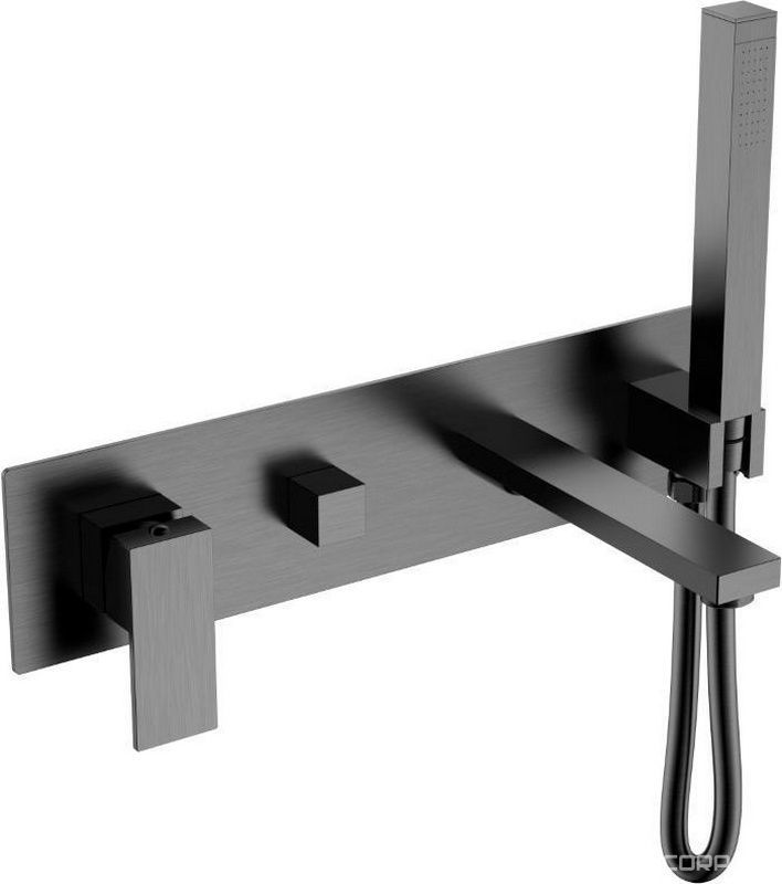 Смеситель для ванный Boheme Qubic Смеситель для ванны/душа, встраиваемый (cмеситель внешн.+ внутренняя часть, излив, лейка, шланг) , цв. оружейная сталь матовая ZZ