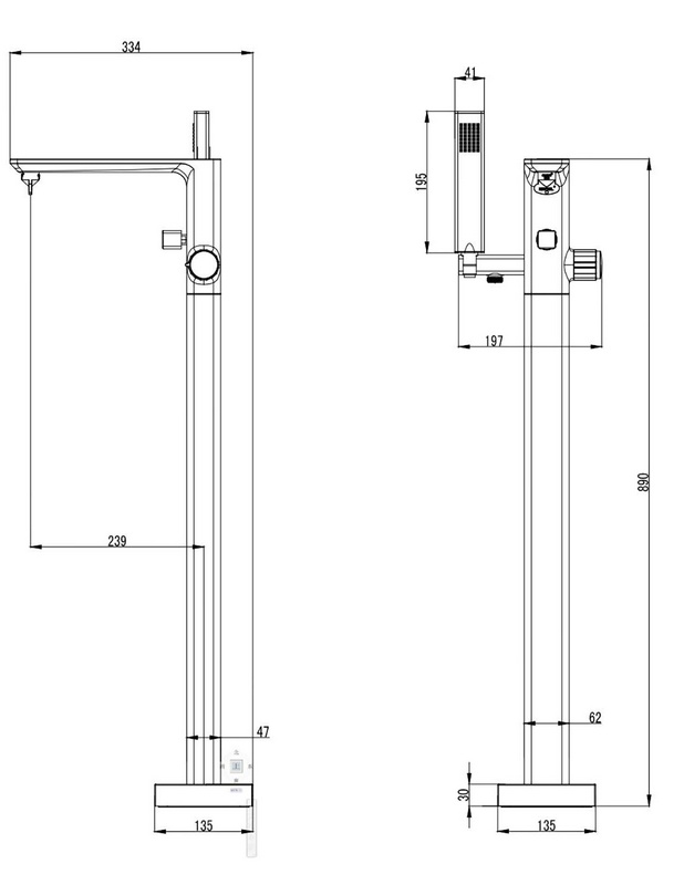 Смеситель для ванный Azario PIANO Смеситель напольный для ванны, с ручным душем и изливом, цв. хром