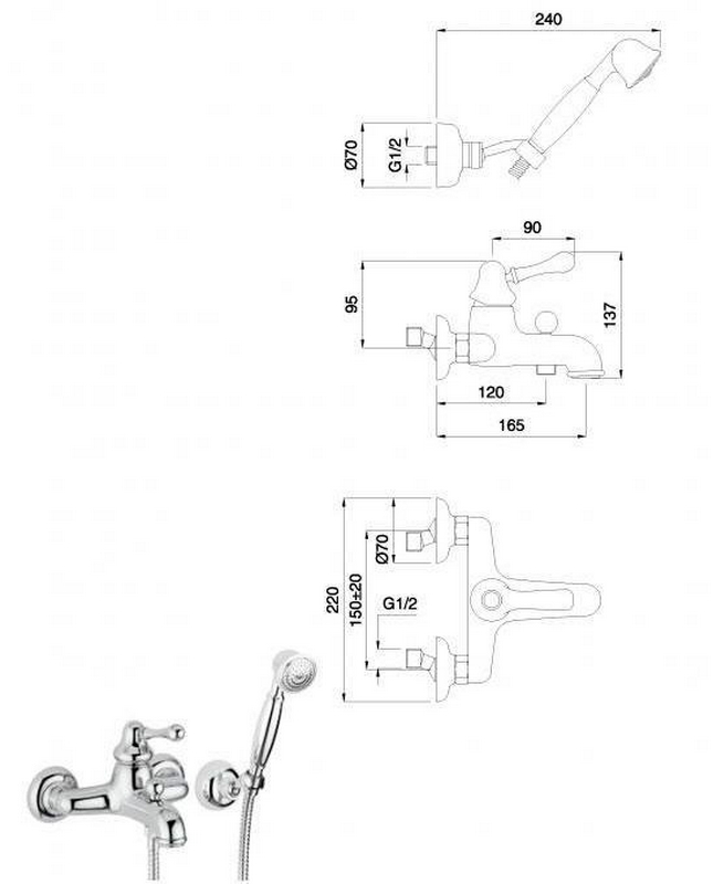 Смеситель для ванный Migliore Maya Смеситель для ванны, лейка, шланг, кронштейн в компл., (цв.золото), Maya