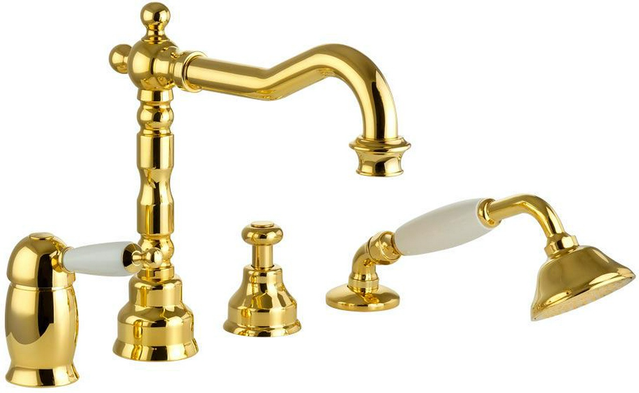 Смеситель для ванны, встраиваемый в борт на 4 отв., лейка, шланг в компл., (цв.золото), Nostalgia ZZ