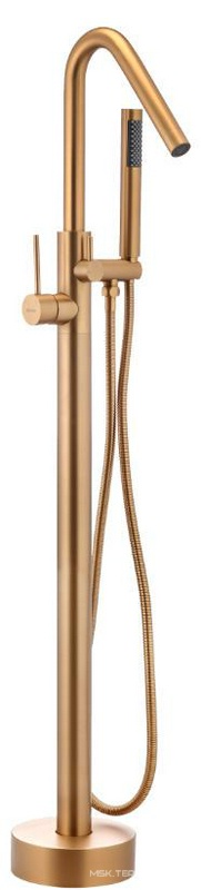 Смеситель для ванны, напольный, душевая лейка, шланг в компл., (цв.брашированное золото), Eco ZZ