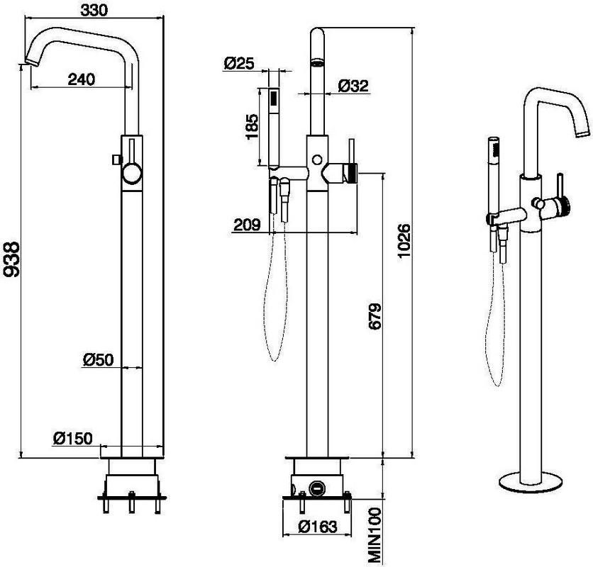Смеситель для ванный Allen Brau Priority Смеситель для ванны, напольный, лейка д/д, шланг, встраиваемая часть в компл.,(цв.графит браш), Priority ZZ