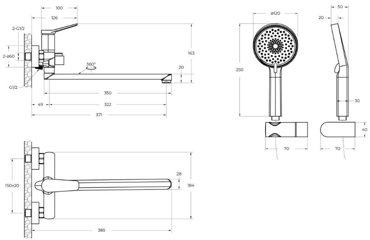 Смеситель для ванный BelBagno Unique Смеситель для ванны, с поворотным изливом, лейка, шланг, кронштейн в компл., (цв.хром), Unique ZZ