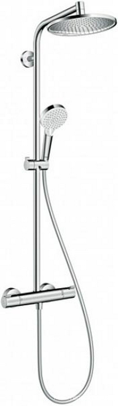 Смеситель-термостат д/д, со стацион. верхним душем круг. 240х240мм, ручной душ, шланг 160см, кронштейн в компл.,(цв.хром), Showerpipe Hansgrohe Crometta S 27267000