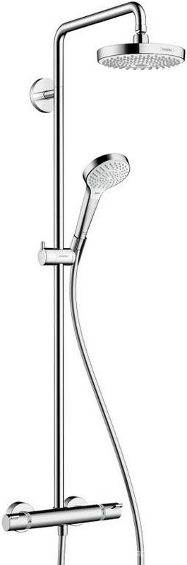 Смеситель для душа (термостат) со стационарным, поворотным верхним душем d180мм, ручной душ, шланг в компл., (цв. хром), ZZ Hansgrohe Croma Select 27253400