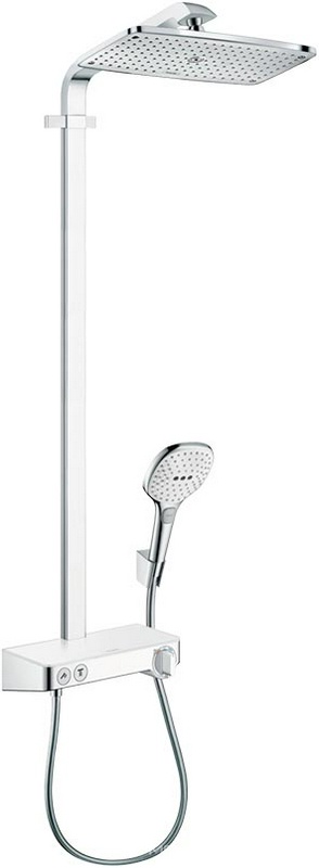 Смеситель д/д (термостат) со стационарн. верхним душем 360х190мм, ручной душ, шланг, кронштейн в компл.,(цв.белый/хром), ZZ Hansgrohe Showerpipe 27288400