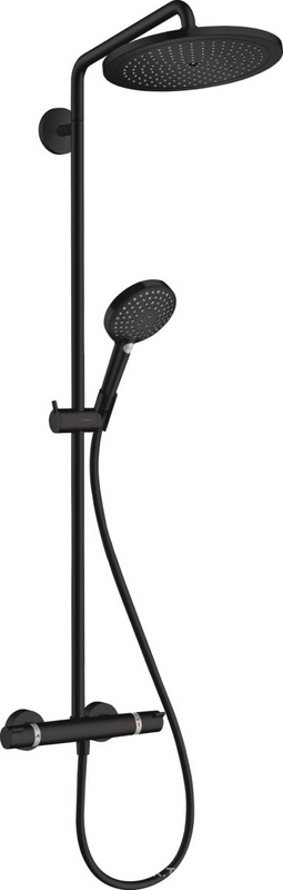 Смеситель для душа (термостат) со стац.верхним душем d280мм, ручной душ, шланг в компл.(цв.черный матовый), Croma Select S Showerpipe 280 1jet ZZ Hansgrohe Raindance Select 26890670