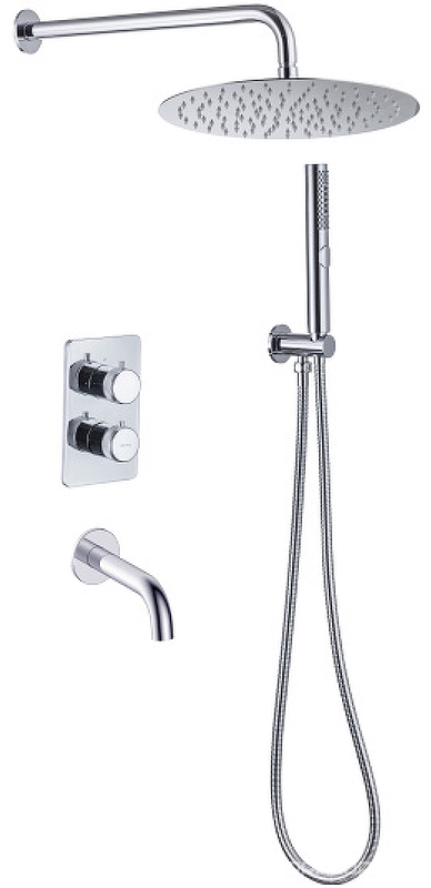 Смес-термостат д/ванны/душа, встр.в сену, со стац.верхн.душем d30см, излив,кронштейн,лейка,держат, шланг, встр.часть в компл, (цв.хром), ZZ Allen Brau Priority 5.31014-00