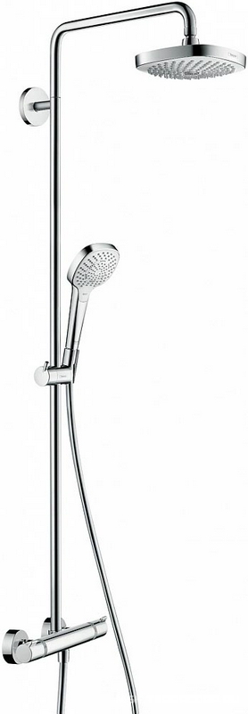 Смеситель для душа (термостат) со стац.верхним душем 180х180мм, ручной душ, шланг в компл., (цв.белый/хром), Showerpipe 180 2jet ZZ Hansgrohe Croma Select E 27256400
