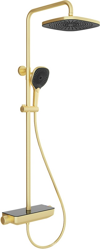 Смеситель-термостат для душа, со стационарным верхним душем пластик d255мм, ручн.душевая лейка, шланг в компл., (цв.шлифованное золото), ZZ Aqueduto Chuva CHU0350