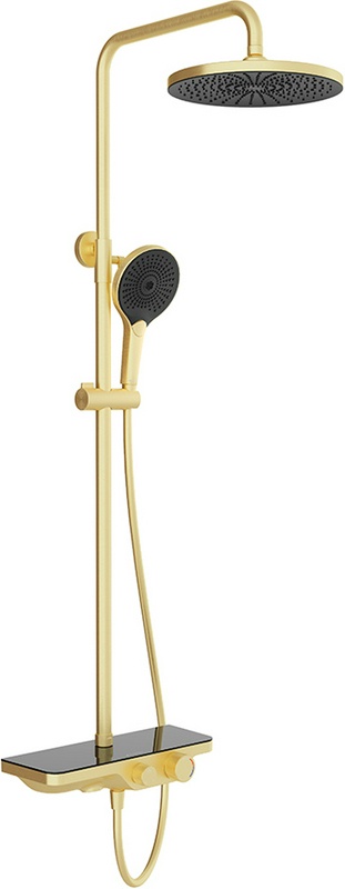 Смеситель для ванны/душа, со стационарным верхним душем пластик d255мм, излив, ручн.душевая лейка, шланг в компл., (цв.шлифованное золото), ZZ Aqueduto Chuva CHU0450