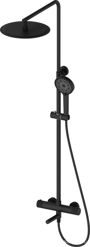 Смеситель-термостат для душа, со стационарным верхним душем d280мм., душевая лейка 140мм, шланг в компл., (цв.черный матовый), ZZ Bossini Apice L10505.073