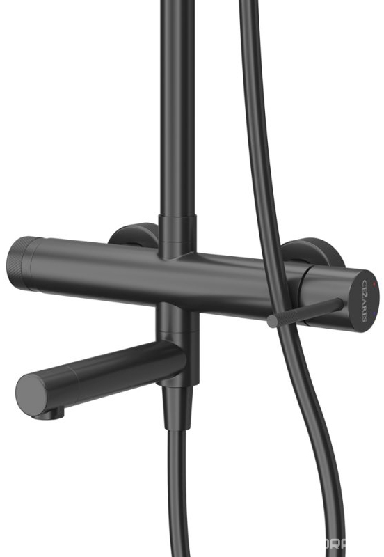 Смеситель для ванны, со стационарным верхнем душем d23см., душевая лейка, шланг в компл., (цв.черный матовый), Relax ZZ Cezares relax RELAX-CVD-NOP