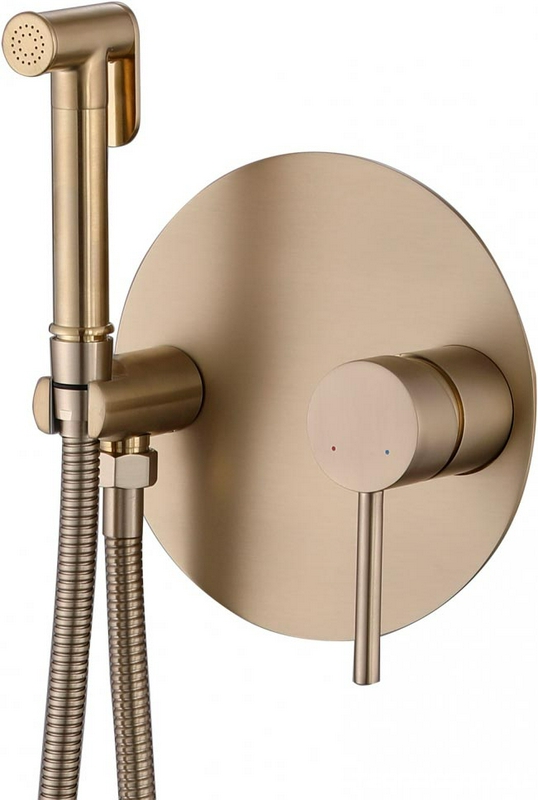 Комплект гигиенический, встраиваемый смеситель, гигиен.лейка, шланг, кронштейн, (цв. золото), ZZ 3M Miss 1677 DD