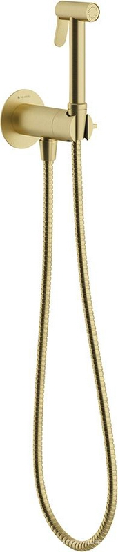 Смеситель совмещённый с гигиеническим душем, готовый комплект: лейка, шланг, скрытая часть, прогрессивный картридж, (цв.шлифованное золото), ZZ Aqueduto PUREZA PUR0150