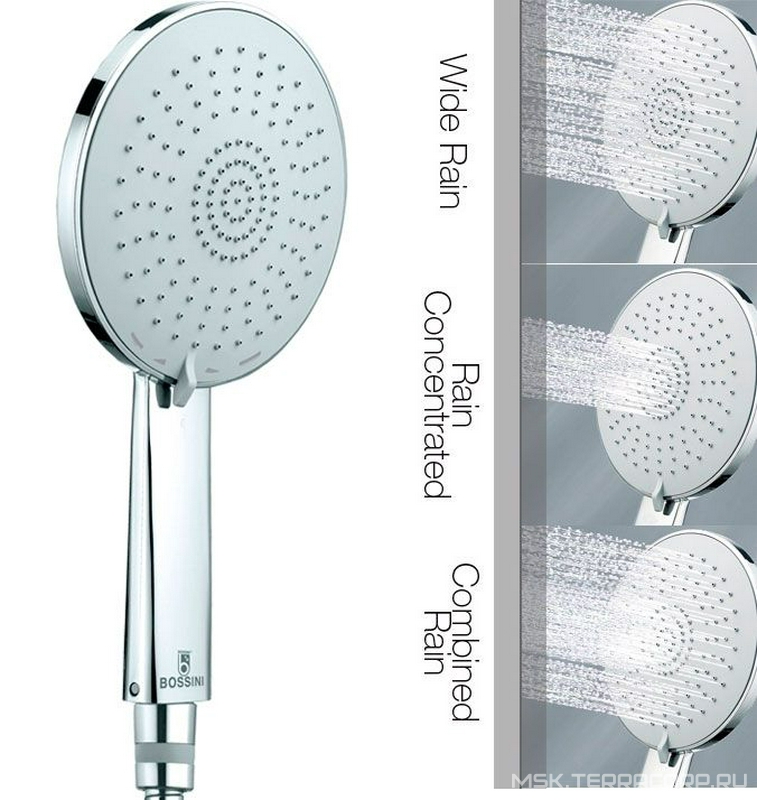 Лейка для душа, ручная, 3 вида струи, (цв.хром), DUETTO-RAIN Bossini