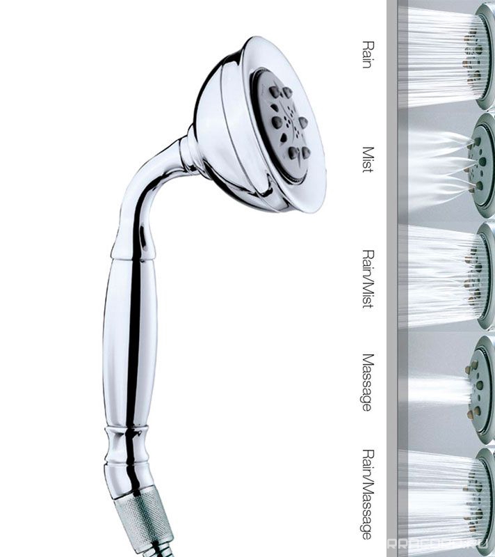 Лейка для душа, ручная, 5 видов струи, (цв.хром), AMBRA Bossini