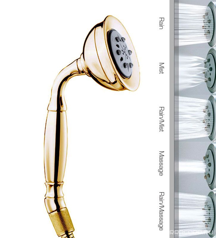 Лейка для душа, ручная, 5 видов струи, (цв.золото), ROMAN Bossini ZZ Bossini Универсал B00586 021