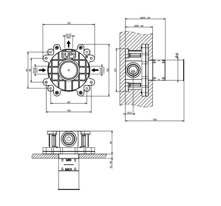 Встраиваемая часть для однорычажного смесителя д/душа/раковины, (цв.Steel Brushed), Gessi ZZ Gessi Универсал 54055 239