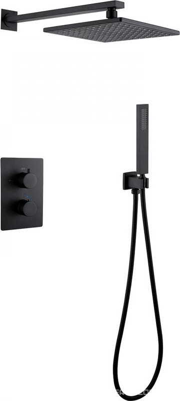 Душ.система встр.в стену: термостат, стац.верхний душ 25х25см., шланг, лейка, кронштейн совмещ.с вых воды в компл., (цв.черный мат.), ZZ Abber Weiss Insel AF8051B