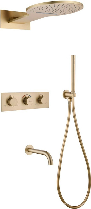 Душ.система встр.в стену: термостат, стац.верхний душ 30см, излив, шланг, лейка, кронштейн совмещ.с вых воды в компл.,(цв.золото мат.), ZZ Abber Weiss Insel AF8150G